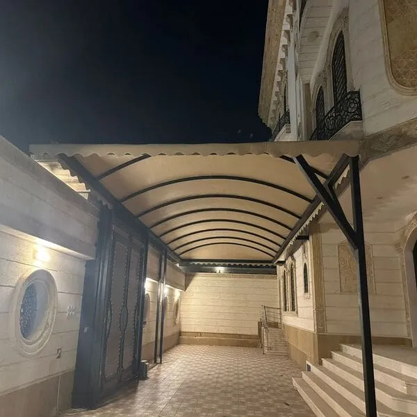 - اختيار التصميم: احرص على أن يتماشى لون وشكل المظلة مع الواجهة المعمارية للمنزل.