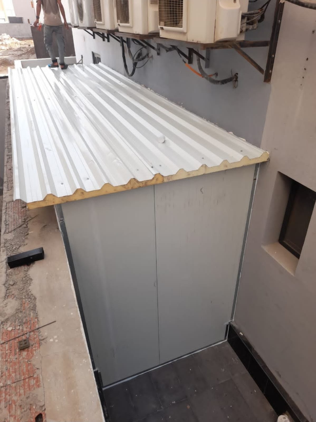 - طبقتان خارجيتان: عادةً ما تكون من صفائح معدنية (صاج مجلفن أو ألومنيوم) مطلية ومقاومة للعوامل الجوية والتآكل.