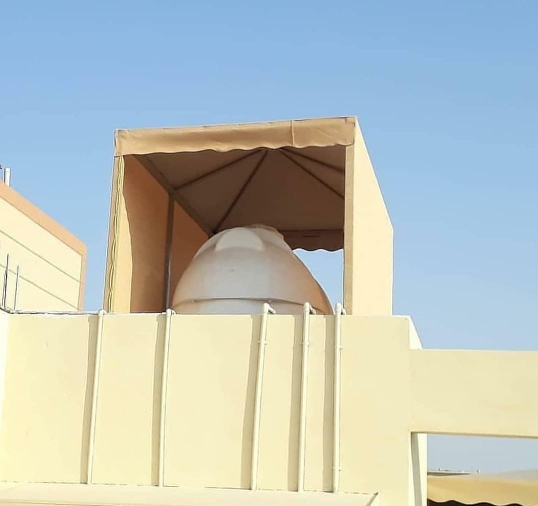 • ​حماية من الحرارة: تعمل المظلة على عزل حراري، مما يقلل من ارتفاع درجة حرارة الماء داخل الخزان. هذا يمنع نمو البكتيريا والطحالب التي تزدهر في المياه الدافئة، ويحافظ على جودة ونظافة المياه.