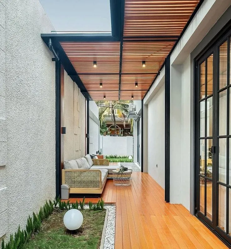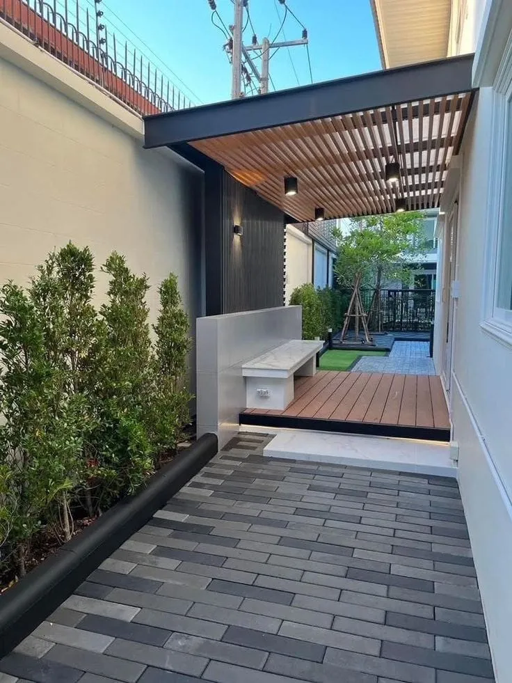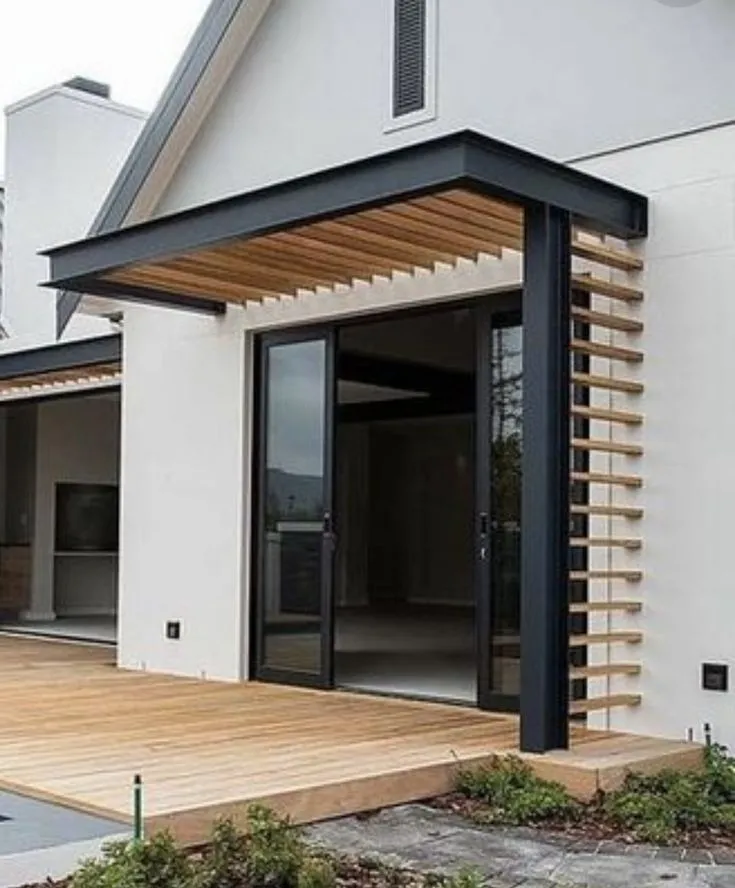 - المظلات الخشبية (البرجولات): تعطي لمسة دافئة وطبيعية، وغالباً ما تُصنع من الخشب المعالج المقاوم للرطوبة وسوس الخشب.