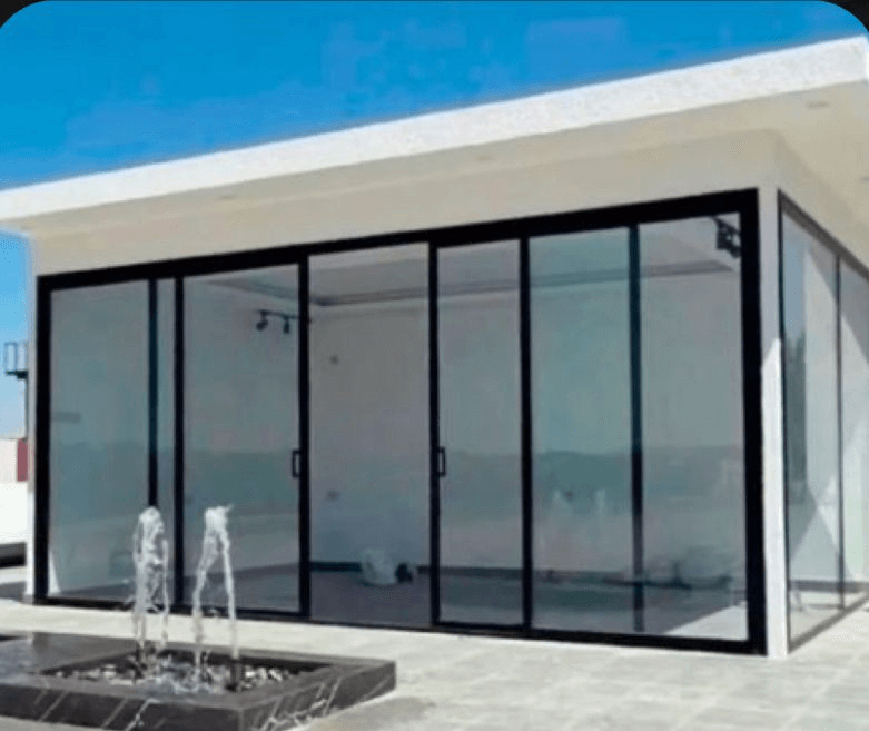 يعتمد على واجهات زجاجية كبيرة تسمح بمرور الضوء الطبيعي وتكشف جمال الحديقة. مثالي ليكون غرفة معيشة نهارية أو مرسماً فنياً.