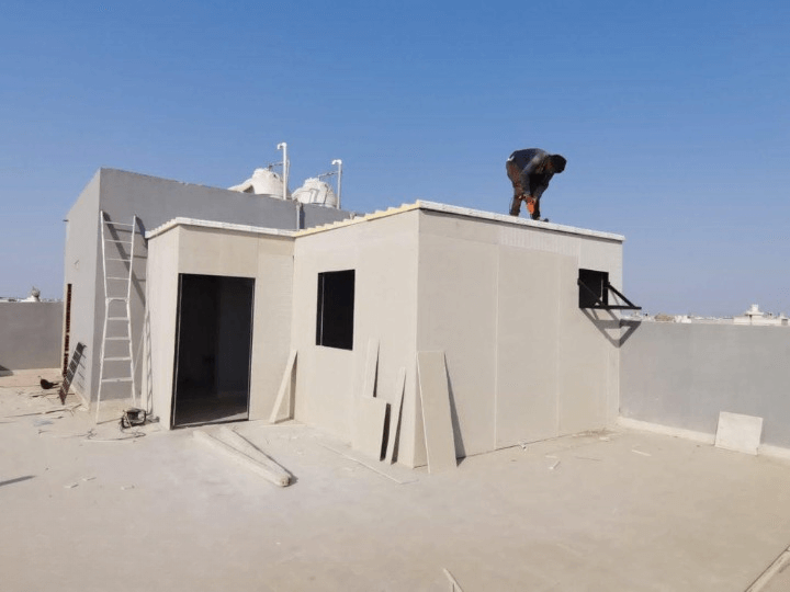 - العزل المائي والحراري: نظراً لتعرض الملحق المباشر للشمس والأمطار، العزل هو أهم خطوة لضمان برودة المكان صيفاً وجفافه شتاءً.