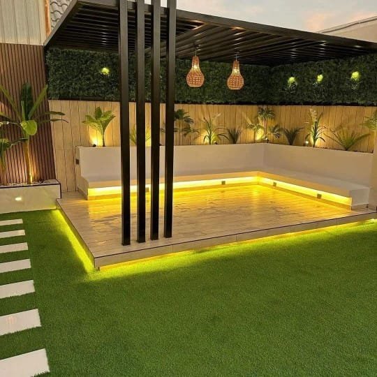 - لإضاءة استخدم إضاءات الـ LED المخفية تحت الجلسات أو في الممرات لخلق جو ساحر ليلاً.