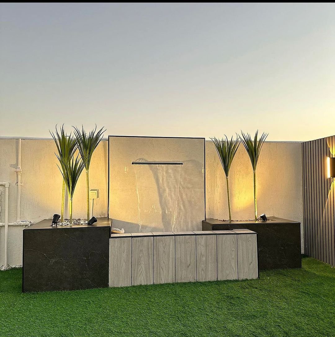 - توزيع احترافي لتمديدات الكهرباء والمياه (للنافورة أو الشلال).